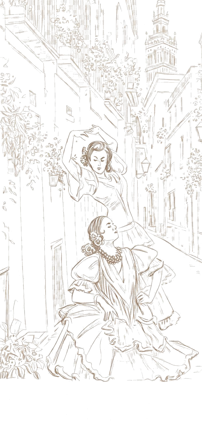 A las orillas del Guadalquivir, la Torre del Oro se alza como guardiana del río y de la historia marítima de la ciudad, mientras que las estrechas calles del barrio Santa Cruz, con sus plazas escondidas y patios floreados, evocan tiempos de poetas, soñadores y amantes que han dejado su huella en cada rincón. Sevilla es también vida, emoción y celebración: en Triana, un barrio de alfareros, marineros y cantaores, el flamenco late con fuerza y tradición.