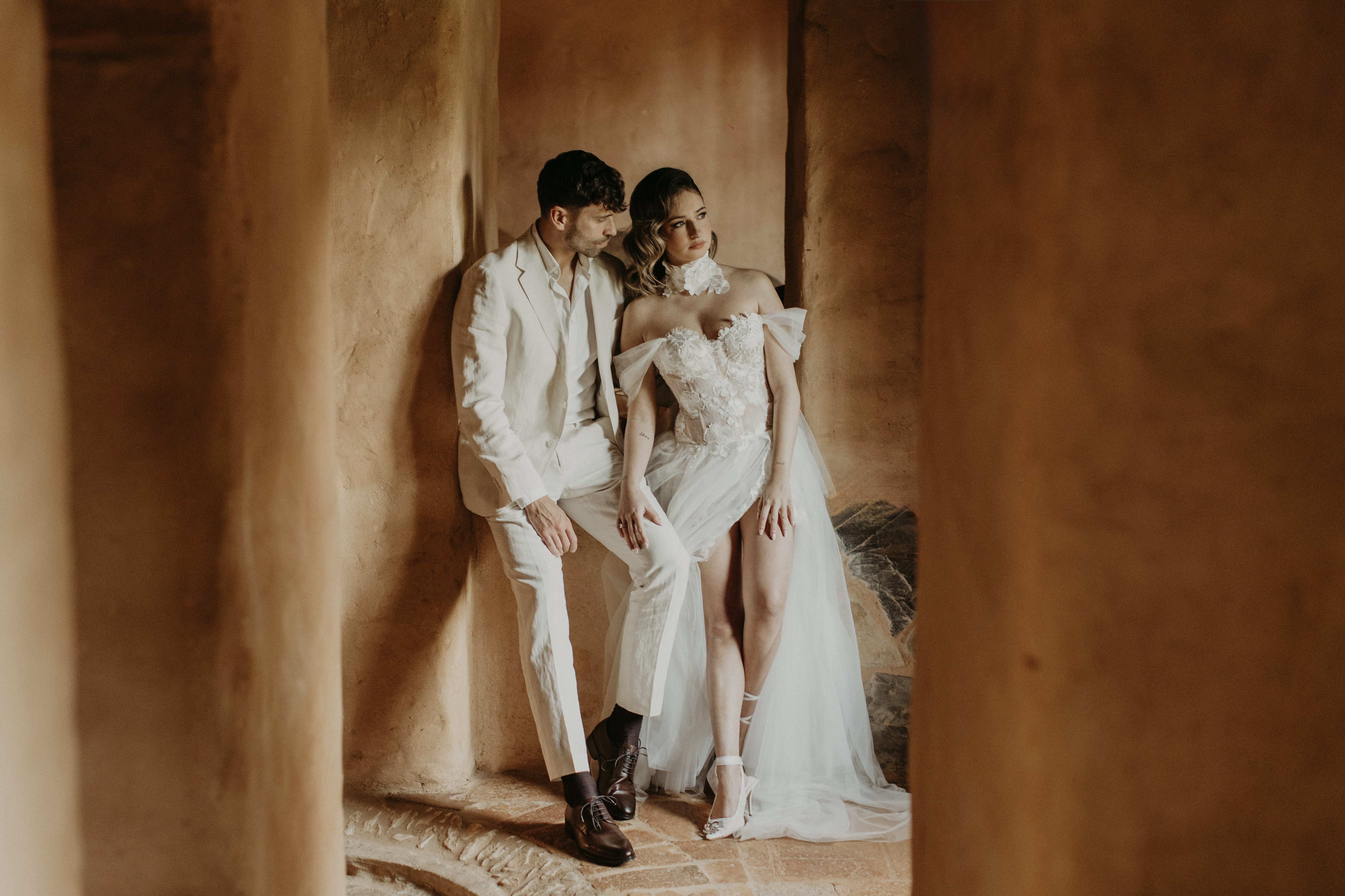 Se requiere el uso de un vestido largo. Solicitamos estrictamente evitar el color blanco, así como cualquier tono derivado de su gama de colores, que estén reservados exclusivamente para la novia. Asimismo, respetando el protocolo de la Catedral de Sevilla, es necesario mantener los hombros cubiertos durante la ceremonia religiosa. Por lo tanto, si el vestido no tiene mangas, solicitamos obligatoriamente el uso de una capa, chal o estola para cubrir el área de los hombros mientras permanecemos dentro de la Catedral de Sevilla.